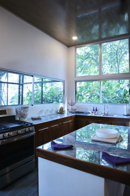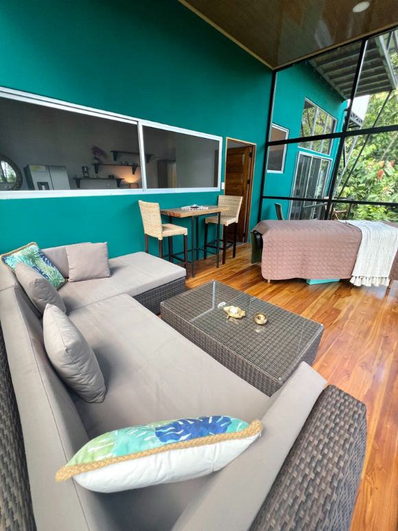 Come and experience the magic of the mountainside amidst nearly 900 cacao trees. The Emerald Haven offers all of the amenities of modern living with the experience of being surrounded by nature. See nothing but the forest outside of every window, enjoy practicing yoga or lounging in the screened-in living room, prepare meals with full-sized appliances in our fully equipped kitchen, or choose to have our private chef prepare meals for you. The space is decorated with teak wood furnishings and has tall ceilings and windows that offer the experience of living in the jungle. Whether you’re seeking a quick weekend getaway or a 1-4 week long healing retreat, we can customize an experience that is tailored for you.