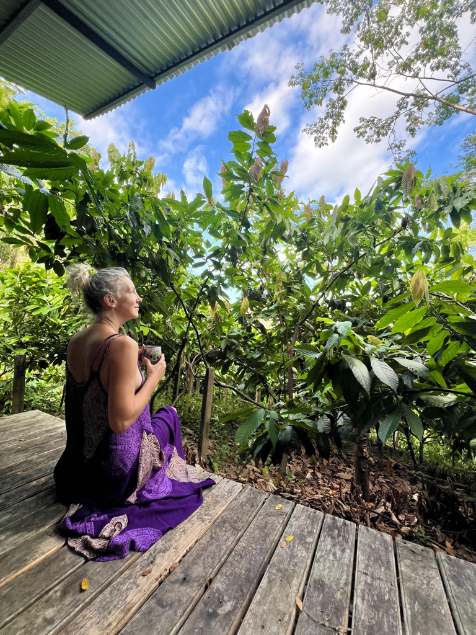 “Literally the best place on earth!!! The experience we had there is almost too amazing to use language to describe! I carry the experience and transformation that occurred with me daily. It is truly a life altering and healing experience. On our last evening there was a Cacao closing ceremony that was so beautiful and cleansing. The Cacao for my husband and I was a very spiritual experience. The trees are beautiful and the sounds of the farm are so calming that I still recall it in my daily meditation process. Amber, thank you for sharing your healing and little piece of heaven on earth with us. We are forever grateful!!“